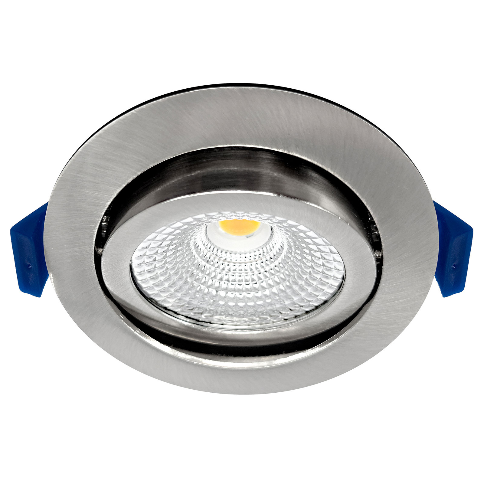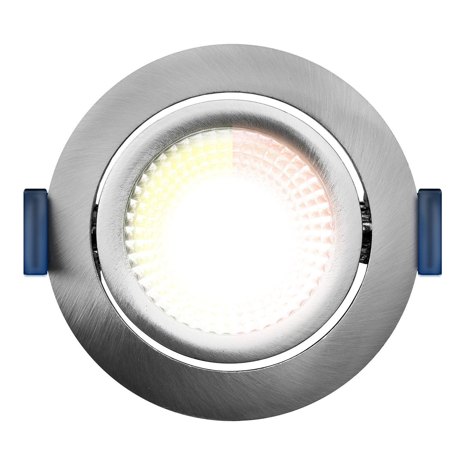 Ce spot encastré LED rond en nickel est protégé contre les éclaboussures (IP54, adapté à la salle de bain) et d'une faible profondeur d'encastrement de seulement 23 mm. Il se distingue par son excellente gradation et sa facilité de câblage en 2 fils grâce à la boîte de jonction compacte avec connecteur à double pince (2 x phase et 2 x fil nul). Une caractéristique spéciale est la couleur de lumière "dim to warm". La couleur de la lumière devient plus chaude au fur et à mesure que l'on fait varier l'intensité lumineuse, c'est-à-dire de 3000K à 2000K.