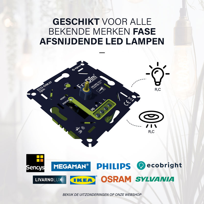 | Dimtechniek: | Smart dimmer Trailing Edge / Fase afsnijding / R,C |